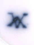 cracks on rim, blue bleeding through areas, small part of edge looks as if repaired, unboxed 10/28/03