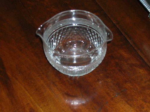 Etched to make three distinct bands, the bottom in a ovolo pattern, the top two bands in a mitre cut.Location