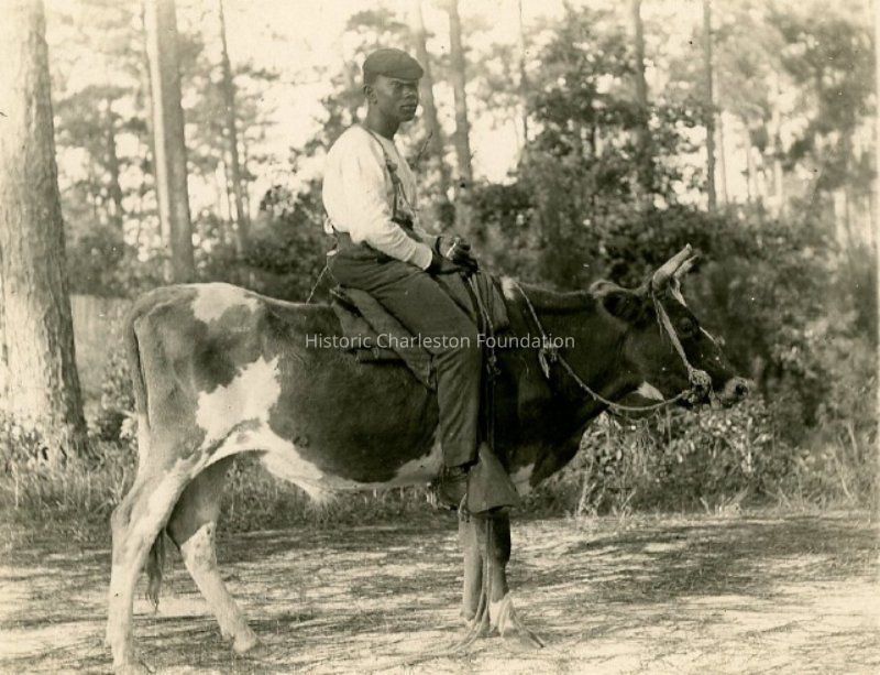 b: Man riding a cow.Collection