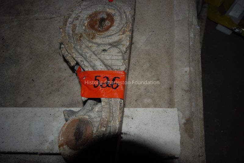 Bracket with decorative leaf details. Possibly from an entryway.Collection