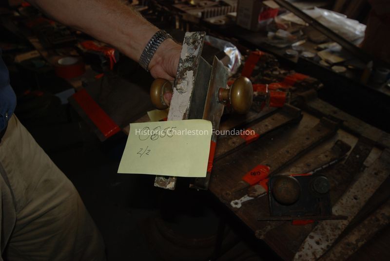 Brass doorknob and mortise lock set (two pieces).Collection