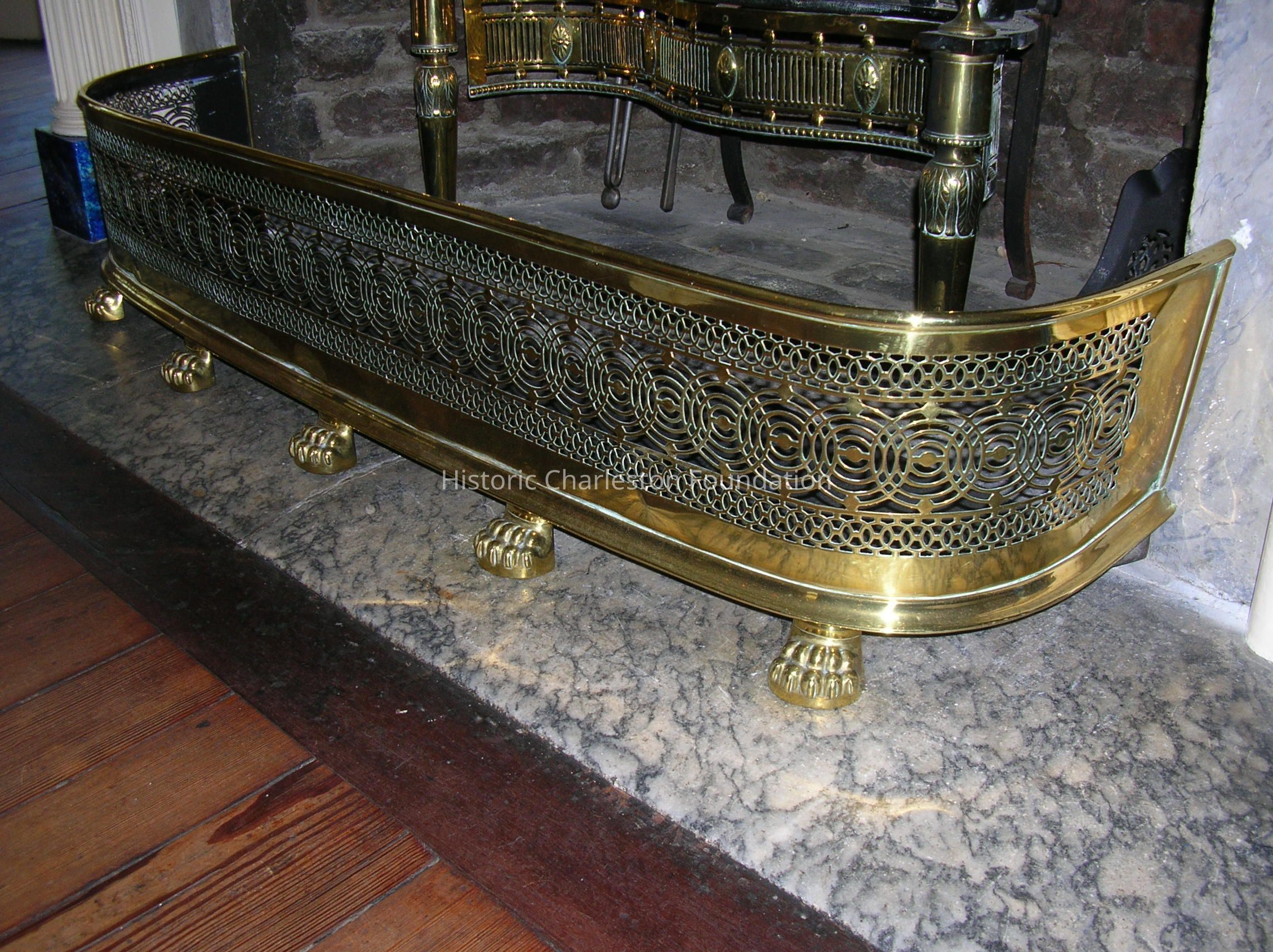 Fender 1830/1840 Brass Brass Fender with five Cast Claw Feet. Three bands of pierced work with central band with four large circles, smaller bands are cingular intertwining circles