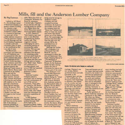File contains history of Broad Street (excerpt from Charleston Streets); HCF walking tour brochure "Broad Street, Charleston, South Carolina, a Walking Adventure"; plats of Broad Street (south side between King and Meeting, 95 Broad Street, Broad and Meeting); newspaper article outlining Broad Street history in time; excerpts featuring Broad Street from "Resources & Attractions of Charleston" (ca. 1898), including photographs (Broad Street looking west from East Bay and of the residence portion of Broad Street (170 block); newspaper article about Anderson Lumber Company (office at 305 Broad Street) (Mercury, Nov. 2015), and excerpt from Old Codgers Charleston Address Book (foot of Broad at Ashley Avenue).Collection