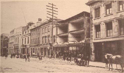 Broad Street was just that, the broadest street in Charles Town. The street was 61 feet wide at the intersection of East Bay and 100 feet wide between St. Michael's Church and the Beef Market, which stood on the site of City Hall. Records during the period, 1698 to 1714 interchangeably, refer to Broad Street and Cooper Street, presumably for Lord Anthony Ashley Cooper. (Charleston Streets website)
