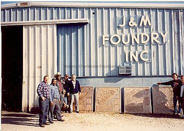 Four bronze historical maps before they leave J&M Foundry (Charleston), where they were cast, to be placed at Waterfront Park.Context