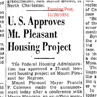 **See Evening Post, 11/20/1951; News & Courier, 2/18/1952.Collection