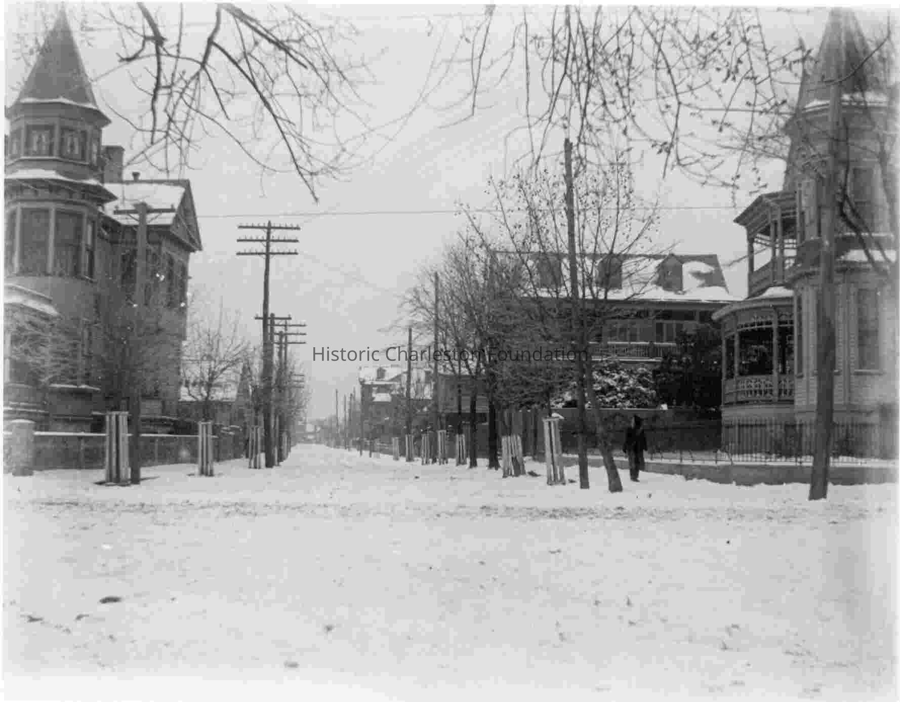 Photo is identified as Calhoun Street at Smith, taken after a snowstorm.Collection