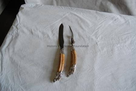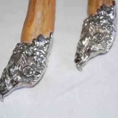 Two-piece carving set with antler/horn handles and silver boars-head terminalsCollection