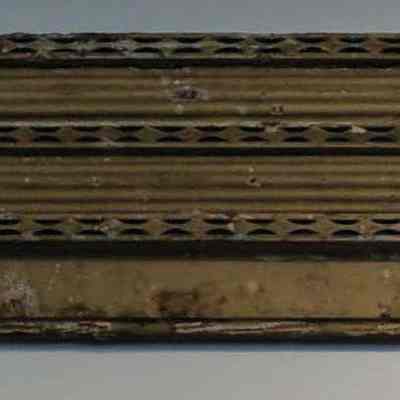 Casing with punchwork pattern. Punchwork is in three bands with reeding between courses of punchwork. Painted a tan-ish yellow color. From the Muller Collection.
