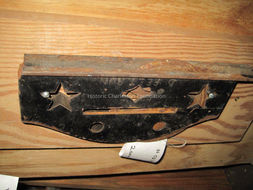 Pocket door mount manufactured by Russell & Erwin. Piece mounts in a pocket door.Collection
