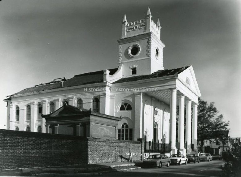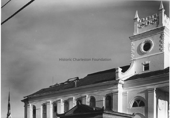 Two B&W photographs of the Cathedral of St. Luke and St. Paul (126 Coming Street) showing roof damage done by Hurricane Hugo.Collection