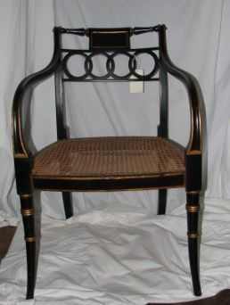Set of Four George III Painted and Decorated Armchairs, C.1800, Each with Turned Crestrail with Rectangular Tablet Above Four Intersecting Circles, Caned Seat on Ring Turned - Splayed Legs. Owned in Mid-Nineteenth Century By Gov and Mrs. R.F.W. Allston.Collection