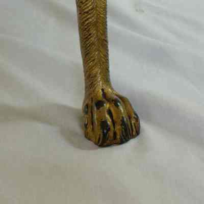 The bowed tablet crest above a lyre-form splat and trapezoidal slipseat, on waterleaf-carved sabre legs with hairy paw feet.Context