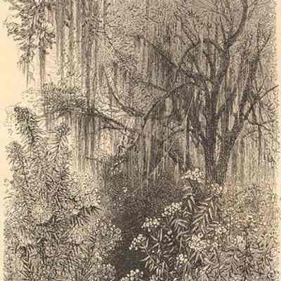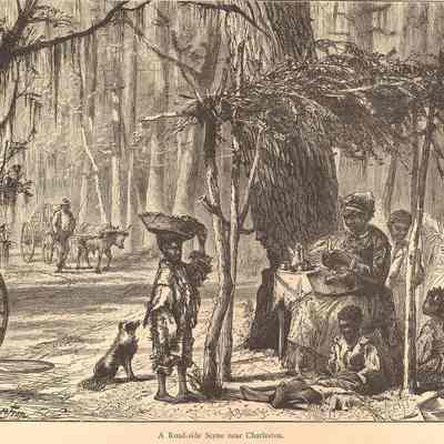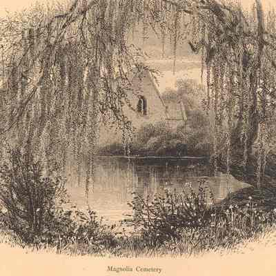 "Charleston and Its Suburbs" in Picturesque America: or the World We Live In [Part Nine] (New York: D. Appleton, 1872). Illustrated with engravings (shown here): Charleston garden; aerial view peninsula; roadside scene near Charleston with African American men, women, and children; Ashley River scene; live oak tree; Magnolia tree at Magnolia Plantation; St. James Church, Goose Creek; Magnolia Cemetery scene.