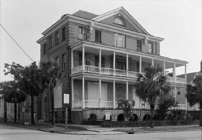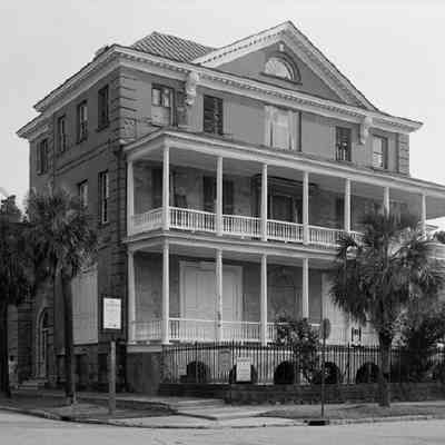 b: View of the Southwest corner of the Aiken-Rhett House. Charleston Museum sign posted at the street corner.