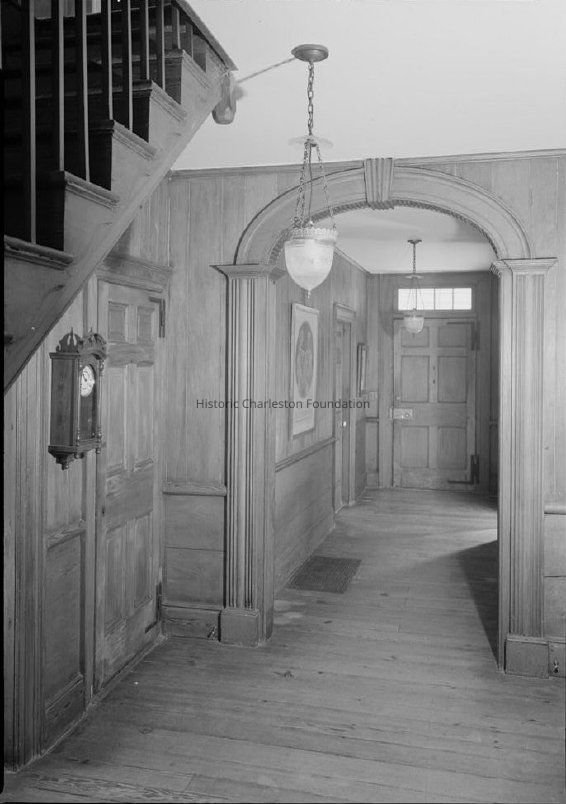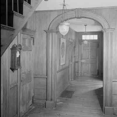 i: Snee Farm. First floor, center hall, looking through arch toward front entry. Stairway in left foreground.