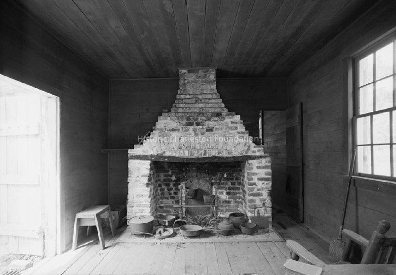 g: McLeod Plantation. View of the fireplace wall of one of the slave cabins.