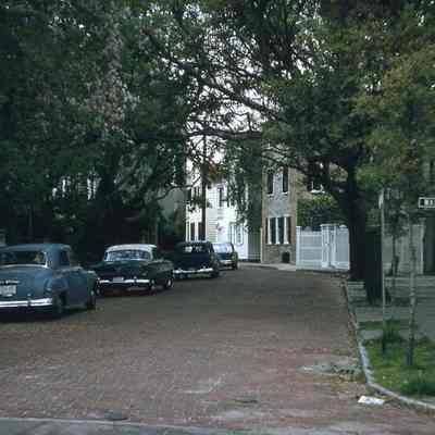 j: View south on Church Street from Louis Danjou House/Brewton's Corner (77 Church Street). Cars parked on the street.