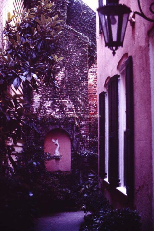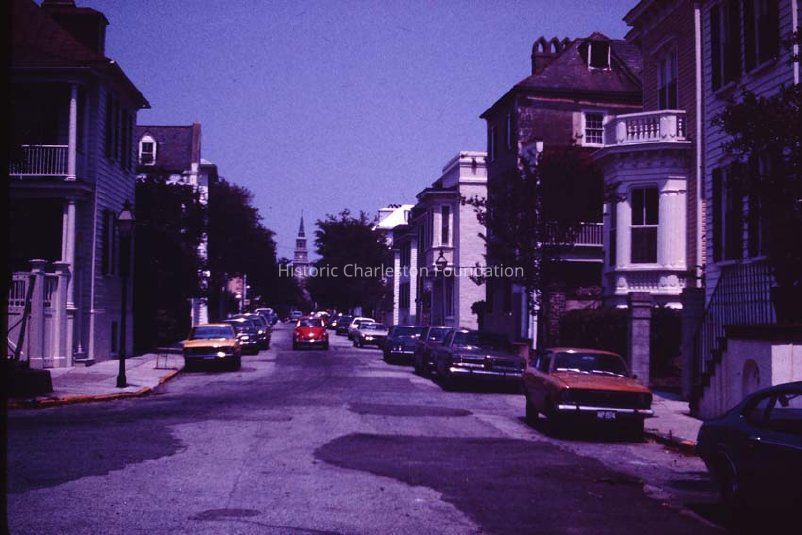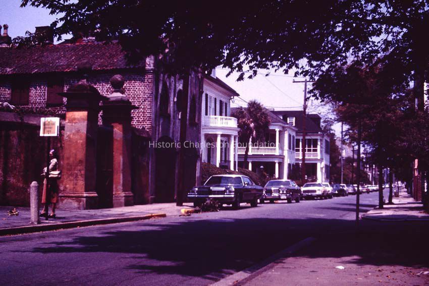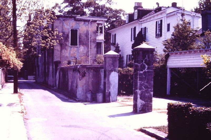 b: View north on King Street from Ladson Street from the carriage house of the Miles Brewton House (27 Meeting Street).