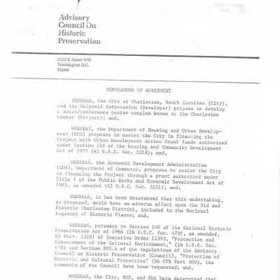 Advisory Council on Historic Preservation "Memorandum of Agreement." (Two copies in folder. PDF on Media tab.)Container
