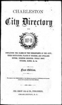 Digital copies (PDF) of Charleston City Directories, which contain names of inhabitants, their occupations, places of business, and dwelling houses; business register; and public institutions, banks, etc. Also includes advertisements.