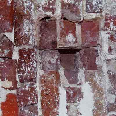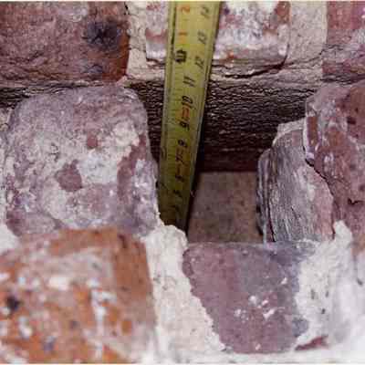 b-c: Two photographs documenting "evidence for 1st period column." Photo C shows tape measure indicating depth. Photograph likely by Historic Charleston Foundation.Collection