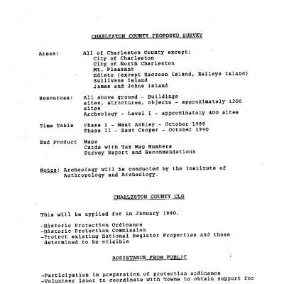 Historic Charleston Foundation assisted Charleston County with the selection of Preservation Consultants and with reviewing drafts, etc. See Media link for associated correspondence.