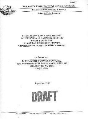 Draft of a Phase I Intensive Cultural Resources Survey. Performed on areas of proposed improvements on the perimeter of the Charleston Executive Airport. Previous assessments indicated a high probability of significant cultural resources to be located within the project alignment and had located several archeological sites, of which two were subsequently placed on the National Register. A total of 16 archaeological sites and 1 archaeological location were located or resurveyed. Seven sites and 1 location are within the project corridor; no standing structures older than 40 years will be affected by construction.
