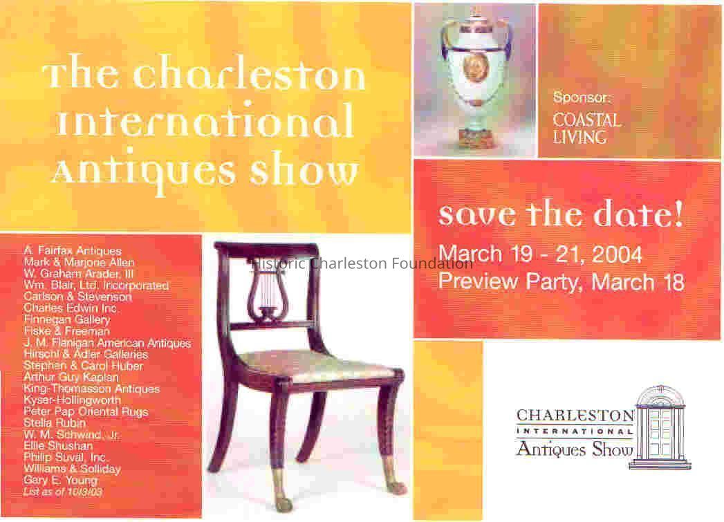 Collection consists of PR and marketing materials (save-the-date cards, brochures, posters, etc.); invitations; show catalogs; other promotional items (including the City of Charleston Proclamation designating Antiques Week in Charleston).Collection