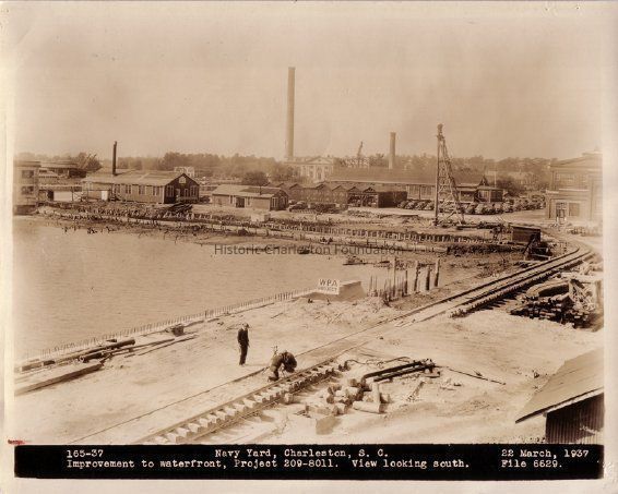 Navy Yard, Charleston, S.C. / Improvement to waterfront, project 209-8011. View looking south. 22 March, 1937.Notes