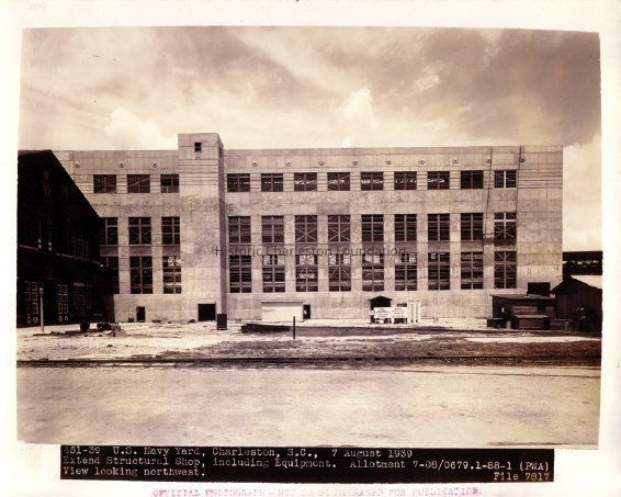 U.S. Navy Yard, Charleston, S.C., 7 August 1939 / Extend Structural Shop, including Equipment. Allotment 7-08/0679.1-88-1 (PWA). / View looking northwest.Location