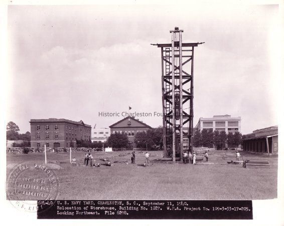 U.S. Navy Yard, Charleston, S.C., September 11, 1940 / Relocation of Storehouse Building No. 1027. W.P.A. Project No. 109-3-33-17-205. / Looking northeast.Location