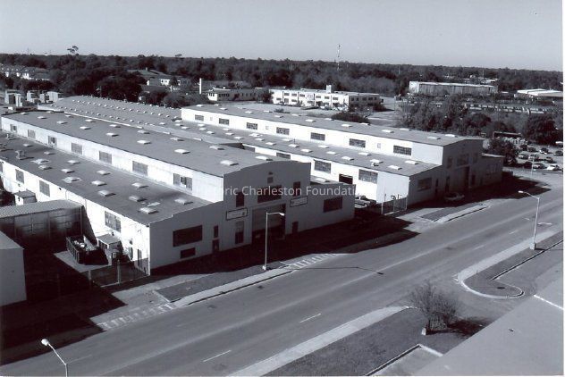 Forty-seven B&W photographs of buildings and grounds comprising the Charleston Navy Shipyard District. Exterior shots.