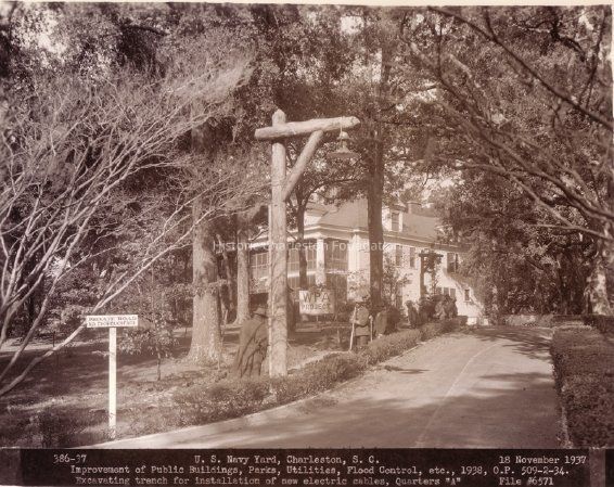 U.S. Navy Yard, Charleston, S.C. / Improvement of Public Buildings, Parks, Utilities, Flood Control, etc., 1938, O.P. 509-2-34 / Excavating trench for installation of new electric cables, Quarters A. 18 November, 1937.Location