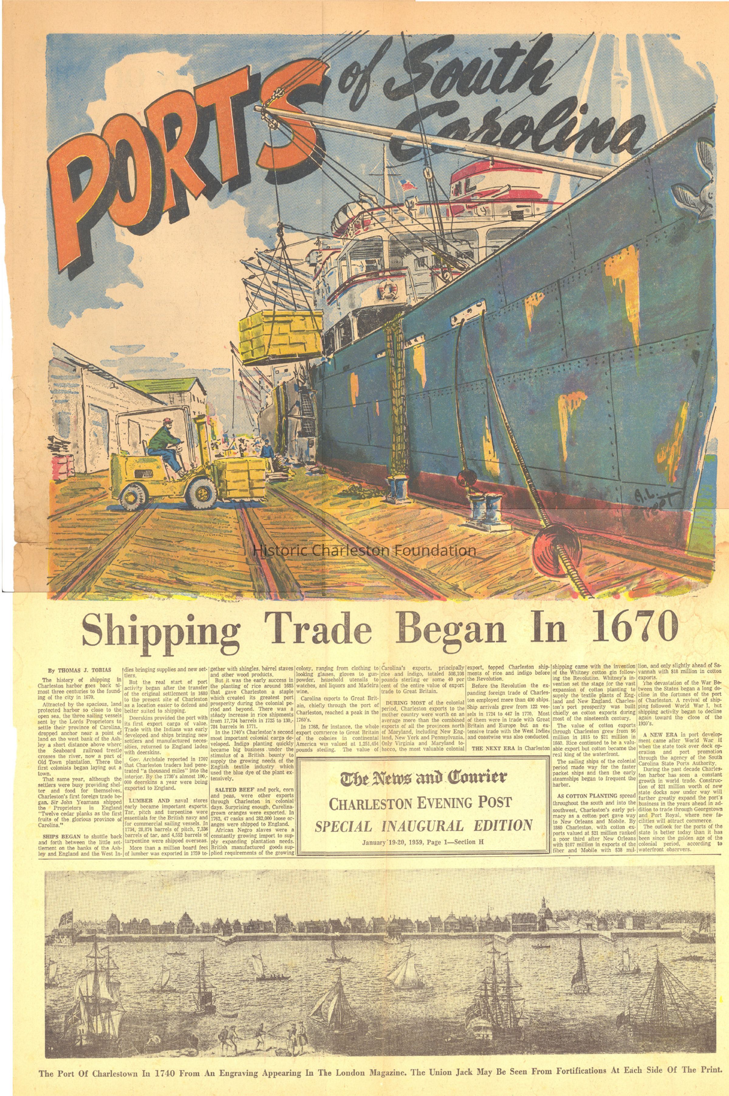 General Charleston articles: "Charleston's Most Interesting Houses" by Samuel G. Stoney (3/1/1964); article about Jenifer Heyward, daughter of DuBose Heyward; "Charleston's Famous Houses" by Jack Leland (6/18/1978) regarding the publication of the booklet 60 Famous Houses; article by Jane E. Allen (1/31/1982) "Portraits Have Charleston Links" about Telfair Art Museum exhibit; "Milk Delivery Thing of Past" by Elsa F. McDowell (with photo of West End Dairy); article about George Washington by Edward O. Marshall (4/9/1984); article about Alice R. Huger Smith (part of series on works at the Gibbes); article about Charleston fires by Jack Leland (2/4/1979); "City's Churches are Lovely Shrines" by Margaret Neeson (1940s?); reprint of National Observer article about Samuel G. Stoney and Charleston; "Many of Charleston's Streets are Named for Early Settlers" by Joseph I. Waring; hurricane of August 11, 1940; Ashley Cooper "Doing the Charleston" about Porgy & Bess; feature on the shipping trade and Charleston port by Thomas J. Tobias (1/19-20/1959); article about inflation in the South by Caroline S. Coleman (10/5/1958); "Lord Ashley Cooper's Album" (3/7/1965) featuring photos of Rutledge House (116 Broad Street), 89 Beaufain Street, Aiken-Rhett House (48 Elizabeth Street), Gadsden House (329 East Bay Street), Blacklock House (18 Bull Street), Parker-Drayton House (6 Gibbes Street), Gaillard-Bennett House (60 Montagu Street), Roper House (9 East Battery); News & Courier's "Charleston Pictorial Exhibit" featuring a selection of Francis Benjamin Johnston photographs to be exhibited at the Gibbes Museum of Art (November 1937), including William Gibbes House (64 South Battery), Edwards-Smythe House (Legare Street), 50 St. Philip Street, St. Michael's Church gates, 54 Tradd Street, 1 Lucas Street, 89 Beaufain Street, 54 Montagu Street, 114 Anson Street, Church and Hayne Streets warehouse, Russell House (51 Meeting Street), Confederate Home courtyard, St. Michael's Alley houses, State Street house (note: advertisement for Timrod Hotel also featured); and captioned photograph of the Hospital and Training School.