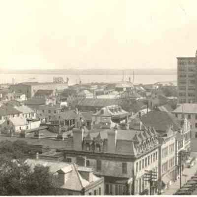 Photo 9: Looking northeast, possibly from City Hall. Landmarks include the rear dormitory apartments of the Confederate Home, St. Philip's Church, and the U.S. Customs House.