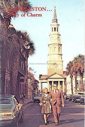 Also includes advertisements for local businesses and maps of Charleston. Photographs (B&W) include: Nathaniel Russell House, aerial view of the Medical University of South Carolina (MUSC), St. Michael's Episcopal Church, Beth Elohim Temple, Boone Hall Plantation, Middleton Place, Randolph Hall, shrimp boats, basket weaver, White Point Gardens. aerial view of Fort Sumter, cobblestone street (Chalmers Street?), 83-87 Church Street, Provost Dungeon at Old Exchange Building, aerial view of Charleston and the Municipal Yacht Basin (cobble