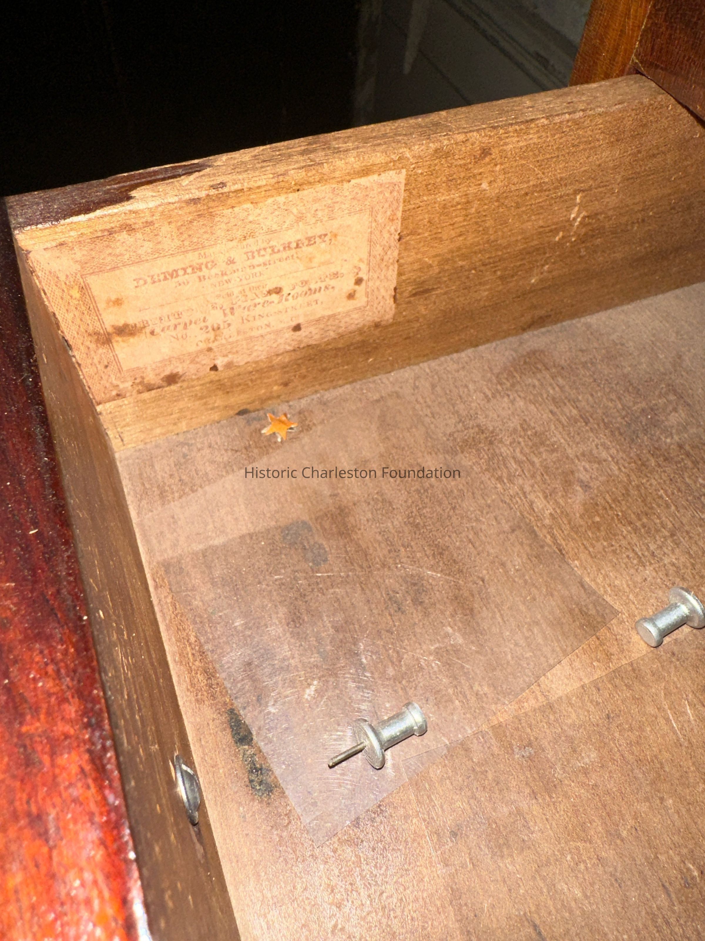 Made by Deming & Bulkley of New York who had warerooms at 206 King Street. This chest retains its original label and was purchased from that location. David Aiken, brother to William Aiken Sr., was most likely the original purchaser.Collection