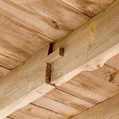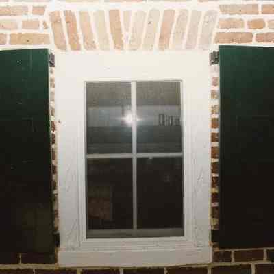 Four color photographs of the brick, joist, beams, and a window of the main house.Collection