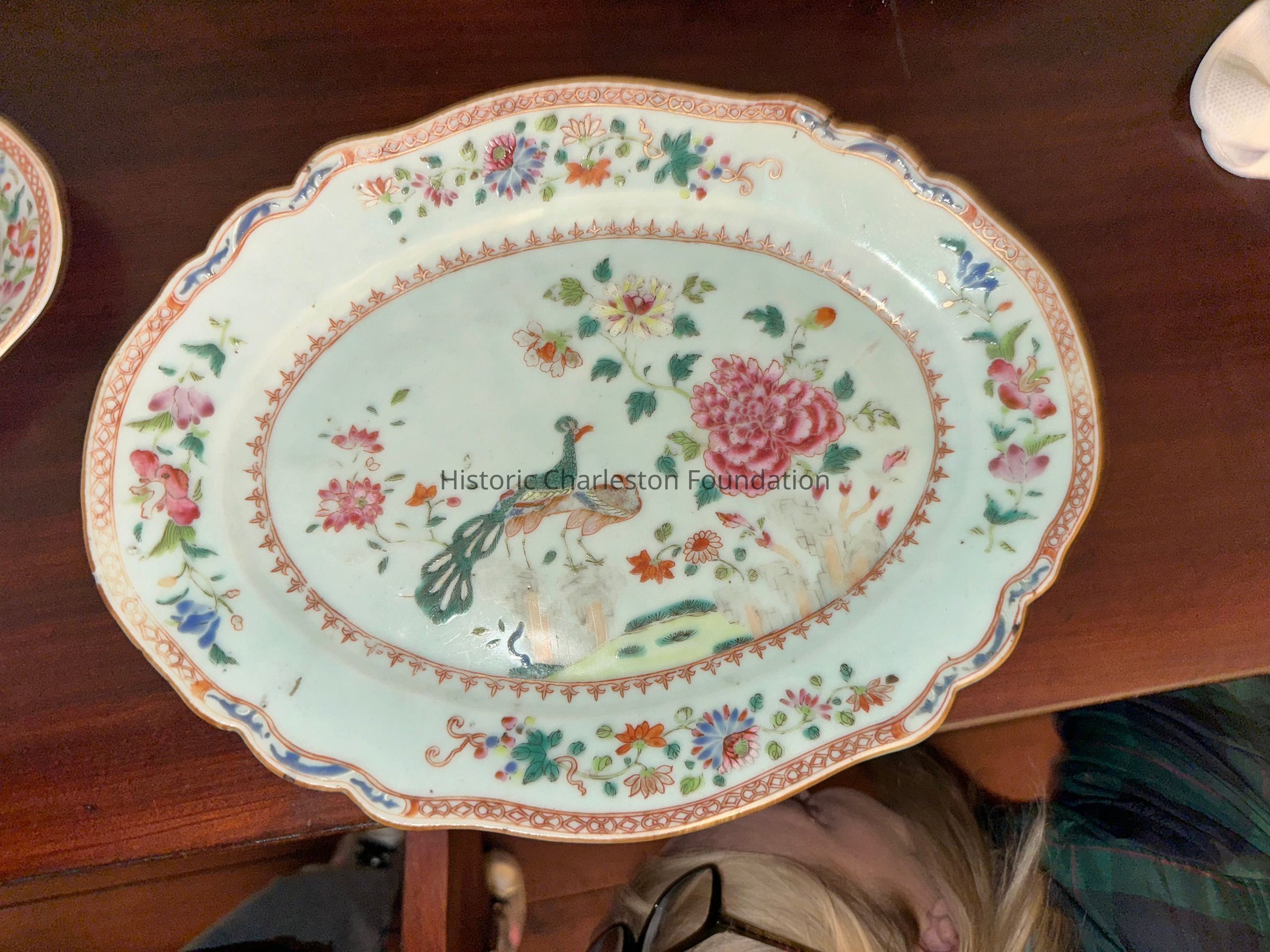 Pattern is the Double peacock and peony pattern, similar to that found at Middleton Place and a set that descended in the Jenkins family now in the collection of the Charleston Museum.Collection