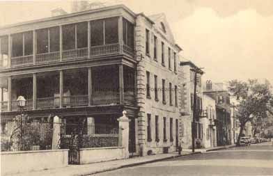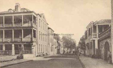 Church Street south of Tradd - Typical Charleston street scene showing iron balconies and side porches. Published by Legerton & Co. (Charleston); "Whitman's Prototypes" (Canton, Pa.).Location