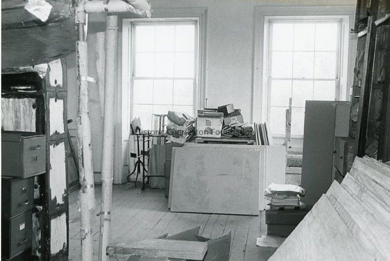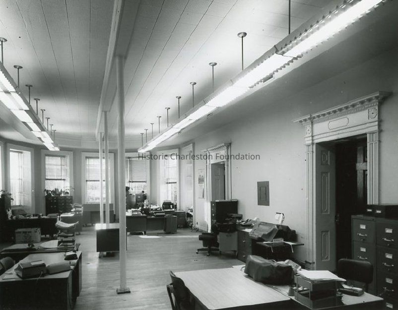 Eleven B&W photographs of the offices and interior features of the Middleton-Pinckney House (14 George Street), then the City Water Works Office: