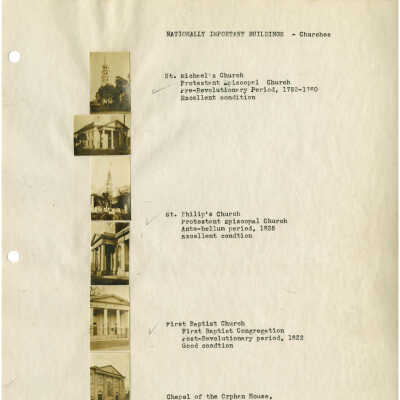 Typed manuscript, with photographs, of the architectural inventory of Charleston that later became This is Charleston. Also includes report entitled "Architectural Inventory for Charleston" that describes the background of the inventory and compilation of materials to be included in the publication.Date(s) of Creation