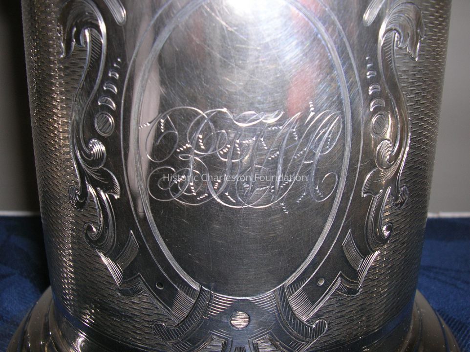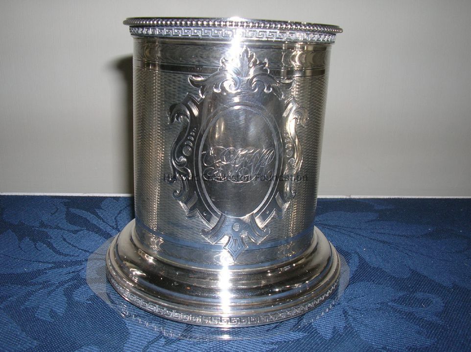 Silver Wine Coaster gadrooned edge with greek key design- Marked: Hayden & Whilden/ G&W/ English Sterling/ Charleston SC Engraved: RFWA