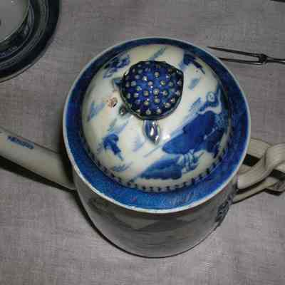 One coffee pot with cover, Blue and White Canton Ware, Chinese Export Porcelain