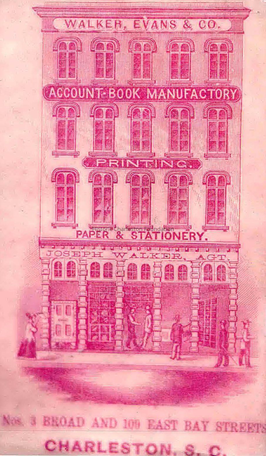 Photocopy of an engraving from a 19th-century invoice for Walker, Evans & Co., Account-Book Manufactory, Printing, Paper & Stationery, Joseph Walker, Agt., Nos. 3 Broad and 109 East Bay Streets.Collection
