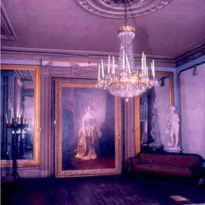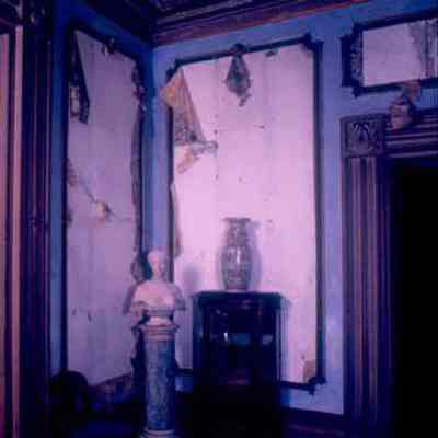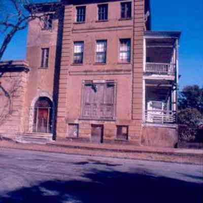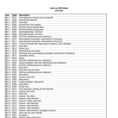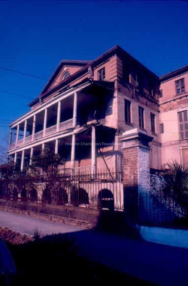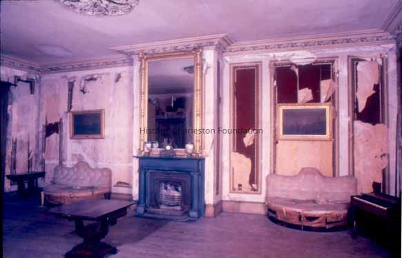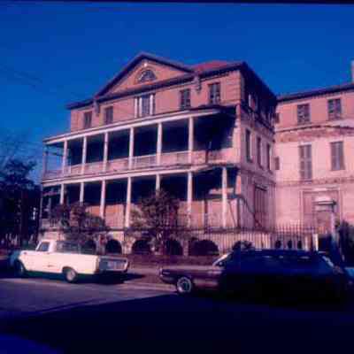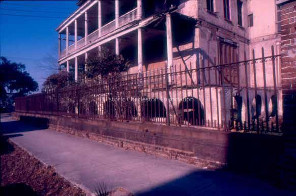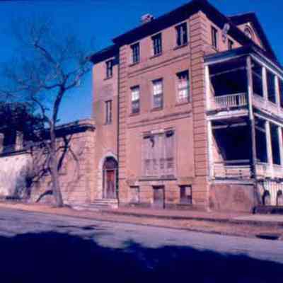 73 color slides of the exterior and interior of the Aiken-Rhett House taken before and during its operation as a museum house by The Charleston Museum, ca. late 1970s and early 1980s. Includes exterior views of elevations, the front door, window shutters, the back lot and outbuildings, kitchen house (slave quarters), carriage house and stable, garden folly, and piazzas. Interior views include the entry hall, east drawing room/parlor, west drawing room/parlor, library, dining room, staircase, art gallery, second floor withdrawing room/ballroom, and second floor bedchamber, with details of chandeliers and lighting device, cast iron railing, cornices, and ceiling ornaments.Context