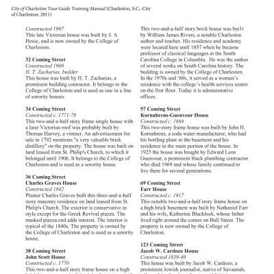 Notes: See Media tab for 36 Coming Street information: 1886 Earthquake damage assessment, Hurricane Hugo damage assessment, excerpt from the City of Charleston Tour Guide Training Manual, excerpt from Gems in a Crown (P183).