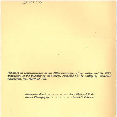 Buildings of Charleston (see Abstract), pg. 479-482General Notes