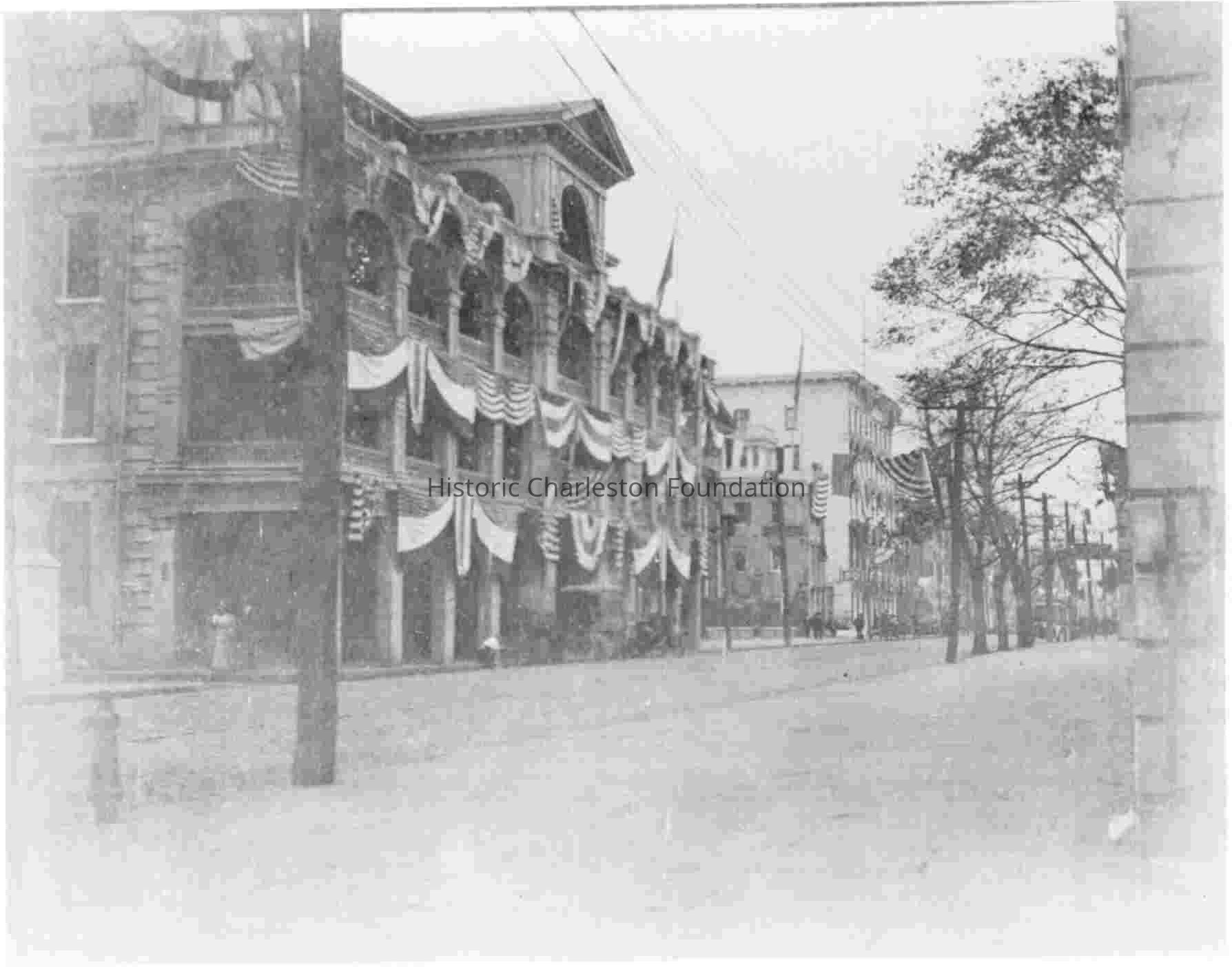 Commercial Club (101 Meeting Street) that was located on Meeting Street between Broad and Queen Streets, decorated for Fleet Week, 1912.Context